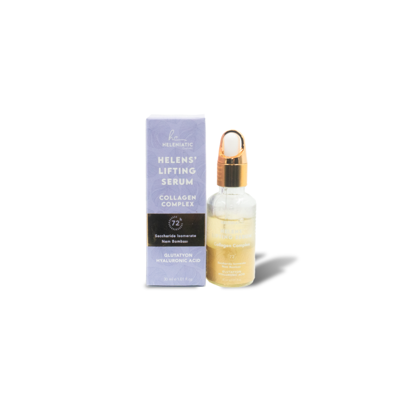 Helens’ Lifting Serum – Sarkma Karşıtı Dolgunlaştırıcı Serum – 72 Saat Nem Bombası İçerisinde bulunan hidrolize kolajen ile bağdokusunu güçlendirme canlı ve parlak cilt görünümünü hedefler.